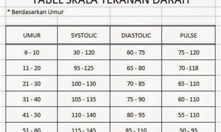 Tabel Standar Tensi Darah Normal Berdasarkan Usia