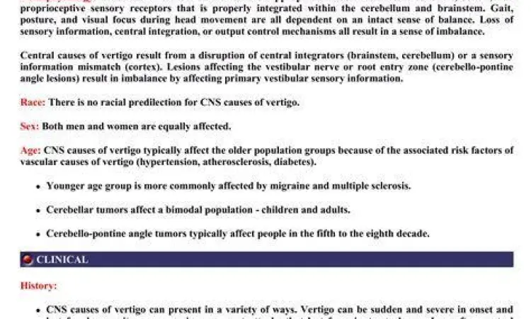 | H81.4 | Vertigo of central origin | Vertigo yang berasal dari gangguan di batang otak atau serebelum (pusat saraf). |
